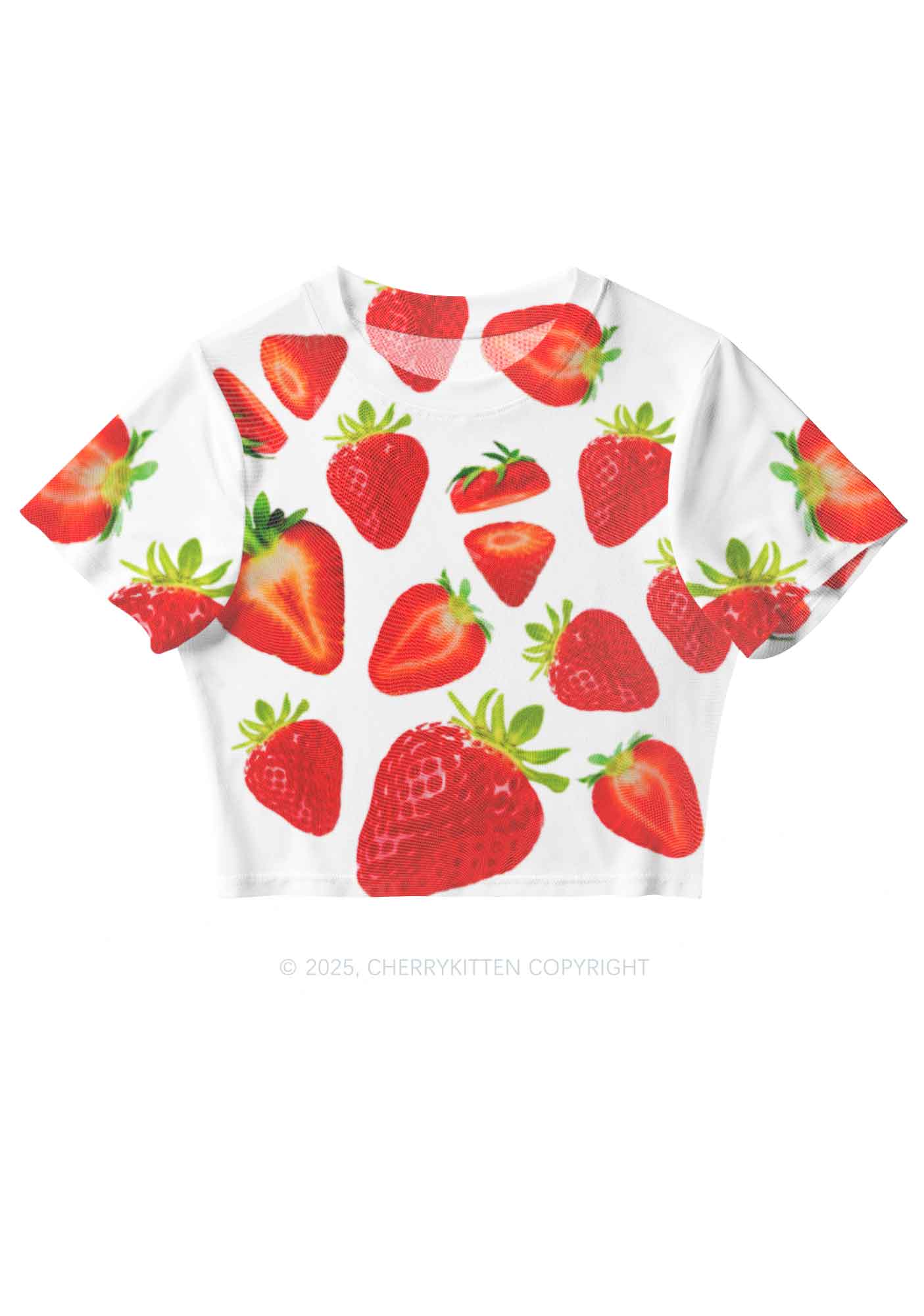 White Strawberry Y2K Mesh Crop Top Cherrykitten