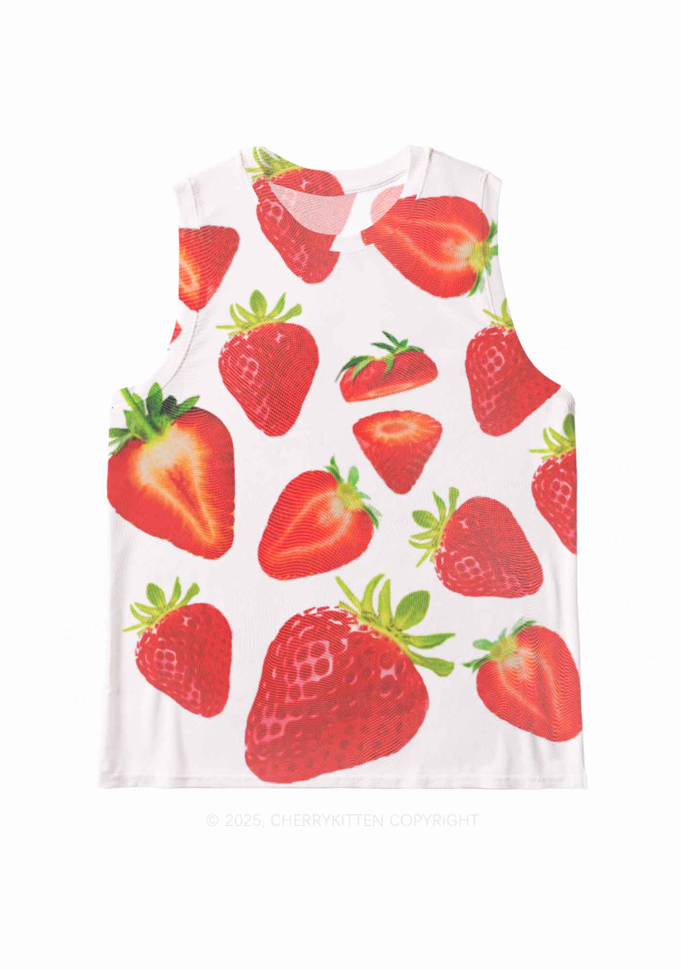 White Strawberry Y2K Mesh Muscle Tank Cherrykitten