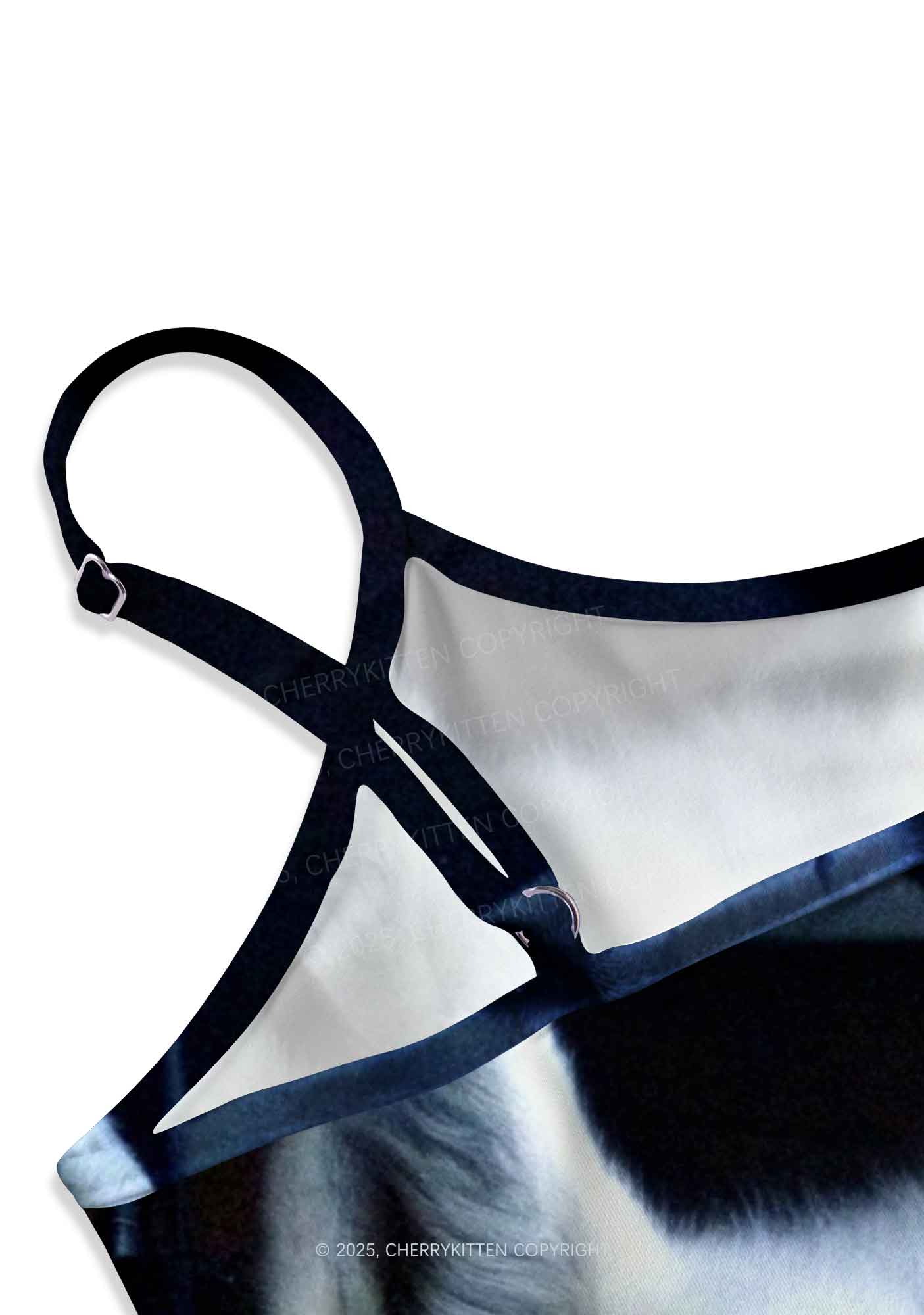 White Wolf Y2K Print Slip Dress Cherrykitten
