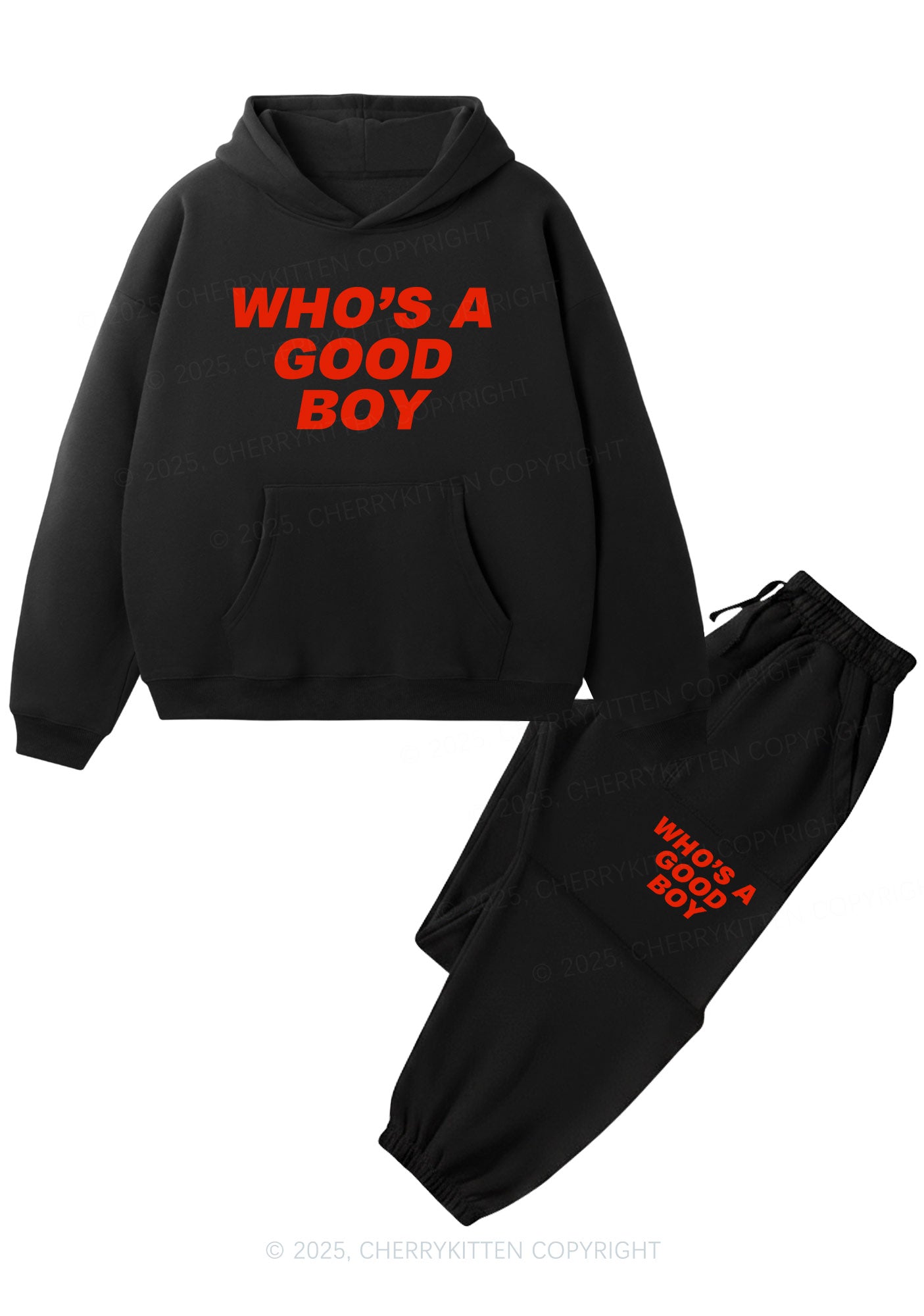 Whos A Good Boy Y2K Fleece Hoodie Set Cherrykitten