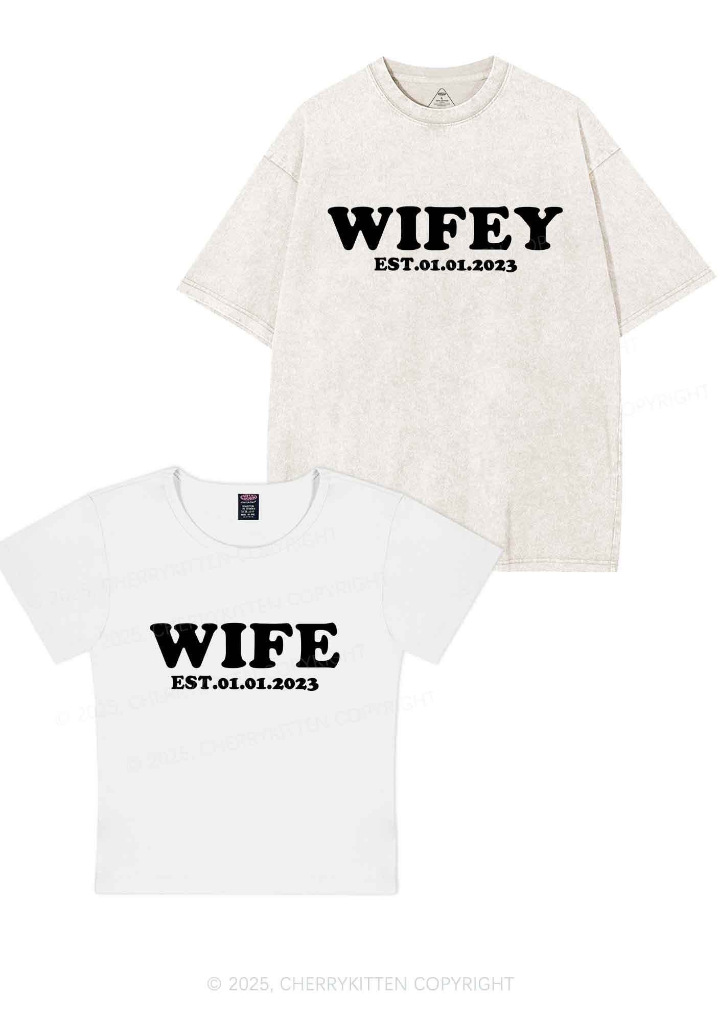 Wife Wifey Custom Date Y2K Valentine's Day Couple Shirt Cherrykitten