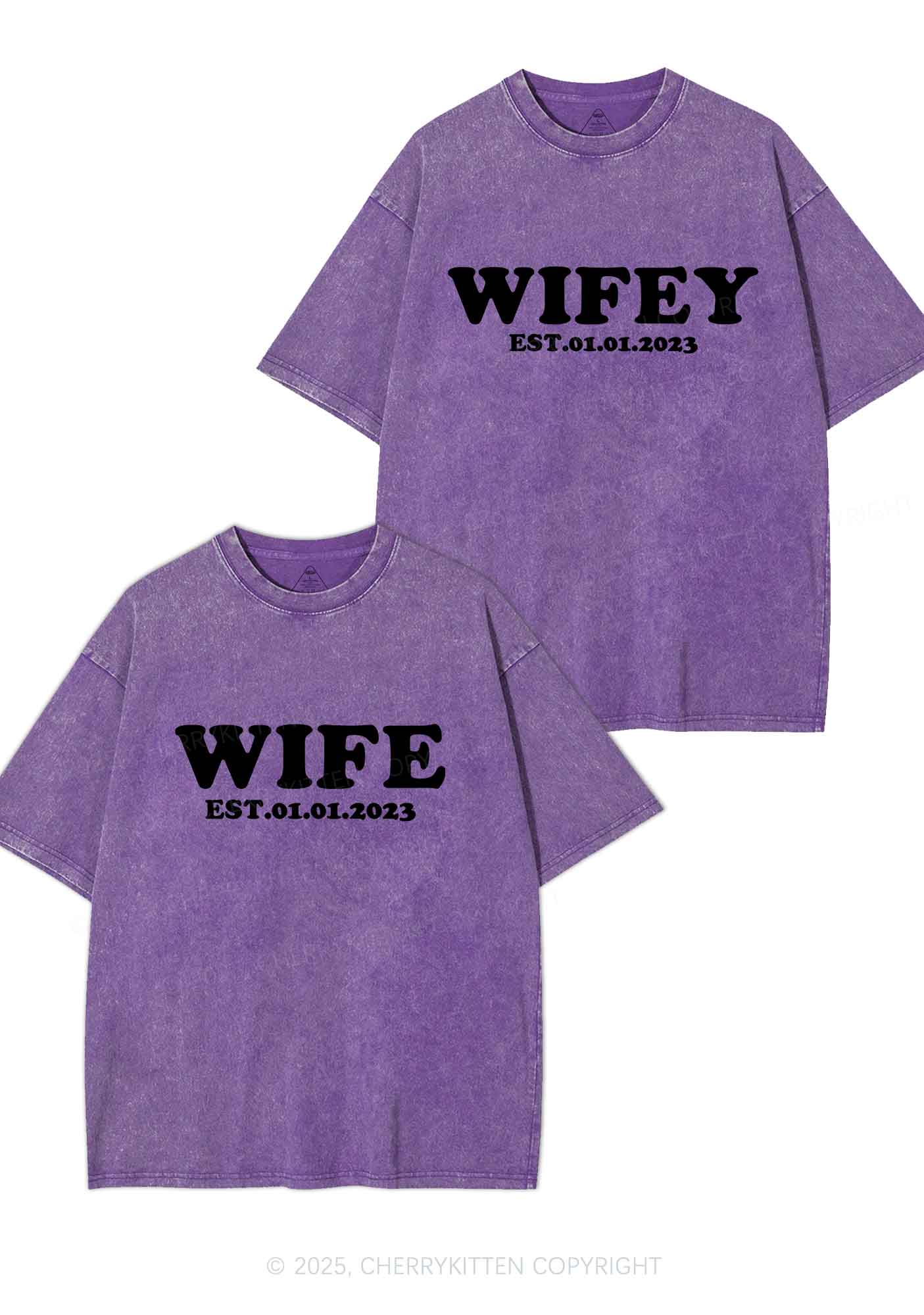 Wife Wifey Custom Date Y2K Valentine's Day Washed Tee Cherrykitten