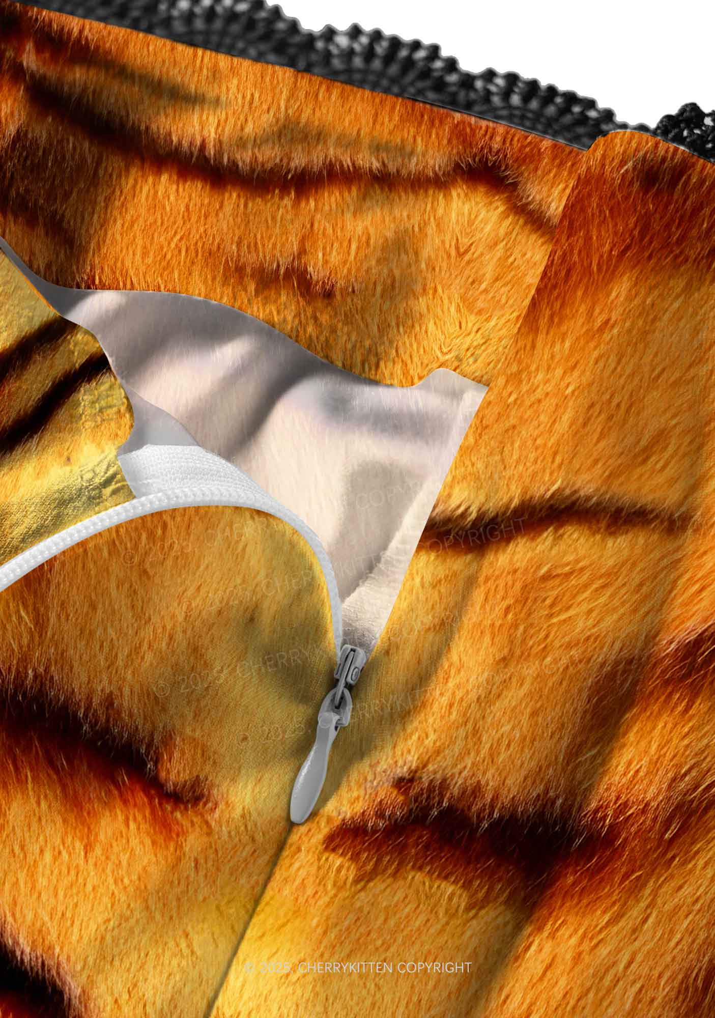 Wild Tiger Texture Y2K Print Midi Skirt Cherrykitten